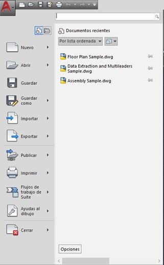 El botón de AutoCAD no es un adorno ya que nos da acceso a varias herramientas, entre ellas la impresión de planos.
